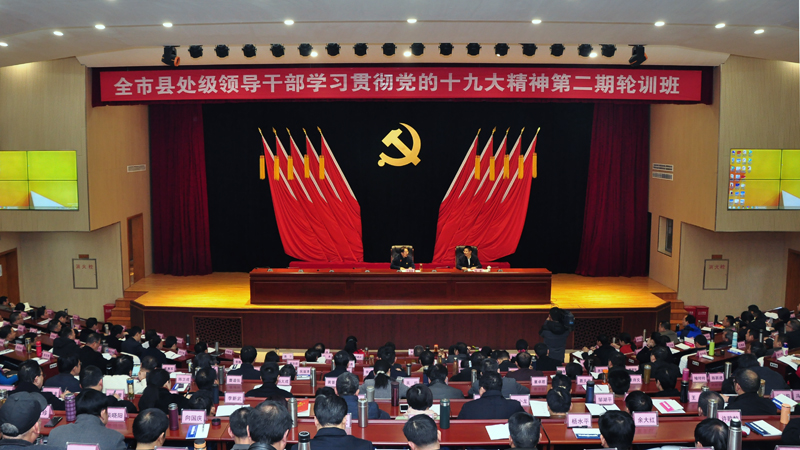 12月19日,全市县处级领导干部学习贯彻党的十九大精神第二期轮训班开班。开班式上,全体学员观看了党的十九大代表、省委宣讲团成员、市委书记、市人大常委会主任胡忠雄在第一期集中轮训班开班式上的专题辅导报告录像。市委常委、组织部长王瑰曙出席并作动员讲话。
